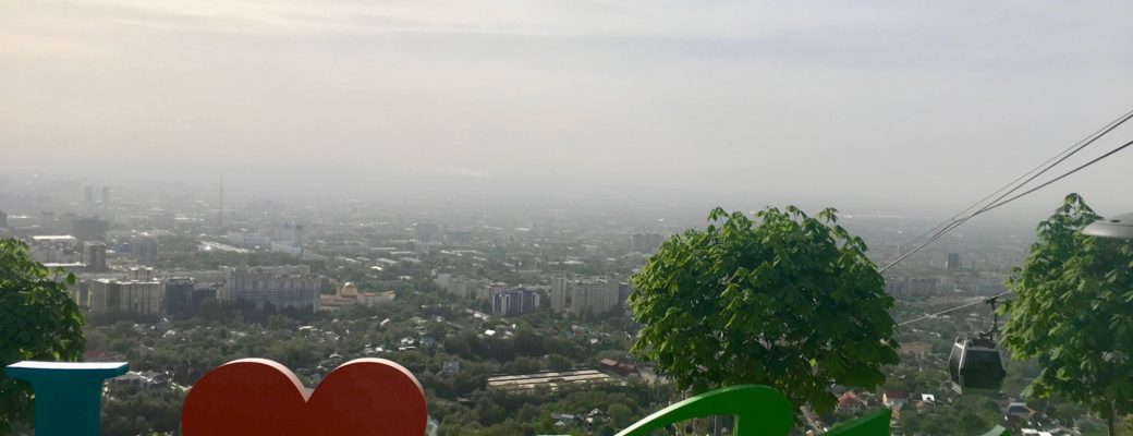 I walked further down the road towards the nearest metro station but decided to have ice-cream, baklava, and a kebab on the way. The kebab price was a bit higher than expected though. I have a feeling the shop owner ripped me off. Feeling overcome by the heat, I caught the metro back to Abay and caught the bus back to the hostel for a brief rest. At about 5 pm, I decided to experience some scenic views and caught the cable car up to Kok Tobe hill. While the view was nice, I was swimming in sweat upon leaving the car. It was like a 10 minute sauna with scenic views. Having some time to kill till sunset I ventured around the hill, saw the random Beatles monument, which even had a nearby speaker playing the same Beatles song, running on repeat of course. Had a look at the nice souvenir shops, and had some great char-grilled shashlik, pretty cheap too.