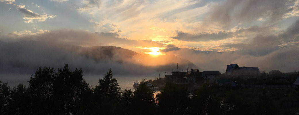 The bus was full of mostly older women dressed for a day suntanning at the beach. Unfortunately for them, it was not to be. Upon alighting at Listvyanka, we were greeted by fog and cool weather. I traded the singlet and shorts for a long sleeve and a hoodie and set off for the hostel. It was situated near the end of a street of the main junction right before the forest. It seems Listvyanka on Lake Baikal has really taken off as a local tourist destination due to the number of wooden holiday houses currently being under construction all around town. I was staying at a cosy share house hostel just off the main street and up a hill. Like previously, I also found it on Booking.com.